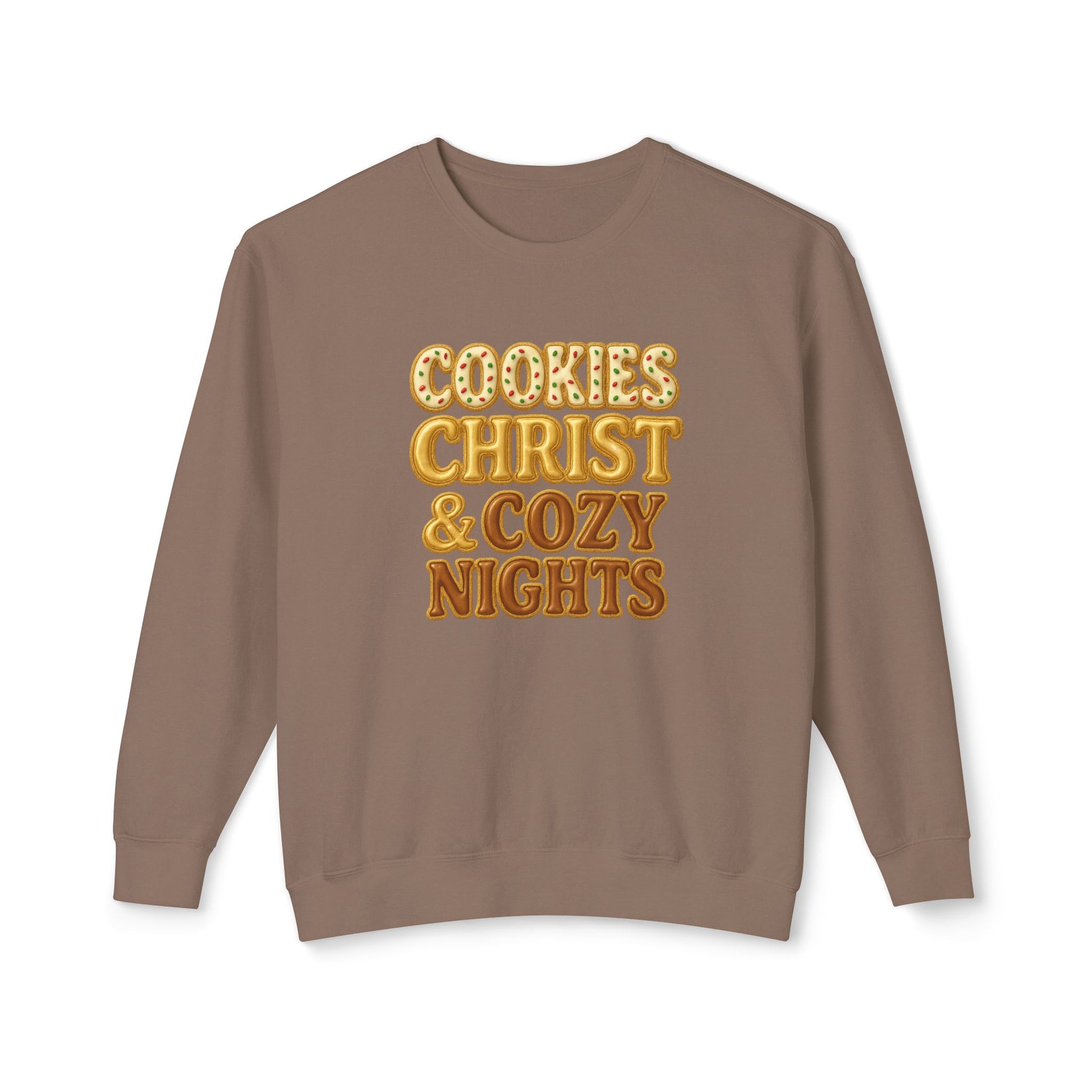 "Cookies, Christ, and Cozy Nights" Comfort Colors Crewneck